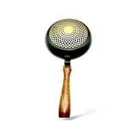 Der Griff nimmt die Hitze nicht an und bleibt angenehm warm. Dadurch kannst du die Pfanne auch problemlos für längere Zeit in der Hand halten.