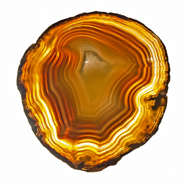 Achate sind vulkanischen Ursprungs und entstanden bereits vor Millionen Jahren. Die sogenannten Achatdrusen – natürliche Geoden – werden durch einen präzisen Querschnitt in flache Scheiben geteilt, um ihre beeindruckenden Muster sichtbar zu machen.