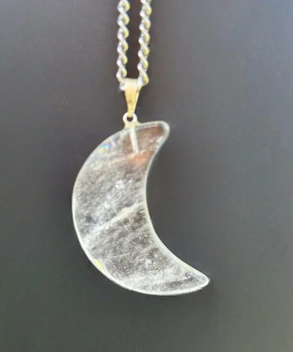 Verwende diesen Bergkristall Mond Anhänger als deinen täglichen Begleiter, der das Gute des Universums in deine Mitte lässt und dich vor negativen Energien oder Schwingungen bewahrt.