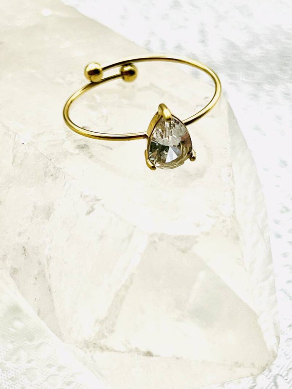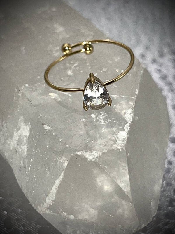 Dieser zarte Ring aus vergoldetem Edelstahl kombiniert minimalistisches Design mit luxuriösem Glanz. Der fein geschliffene Zirkonia-Stein in Diamantform funkelt bei jedem Lichteinfall und macht den Ring zu einem stilvollen Highlight – ob im Alltag oder zu besonderen Anlässen.