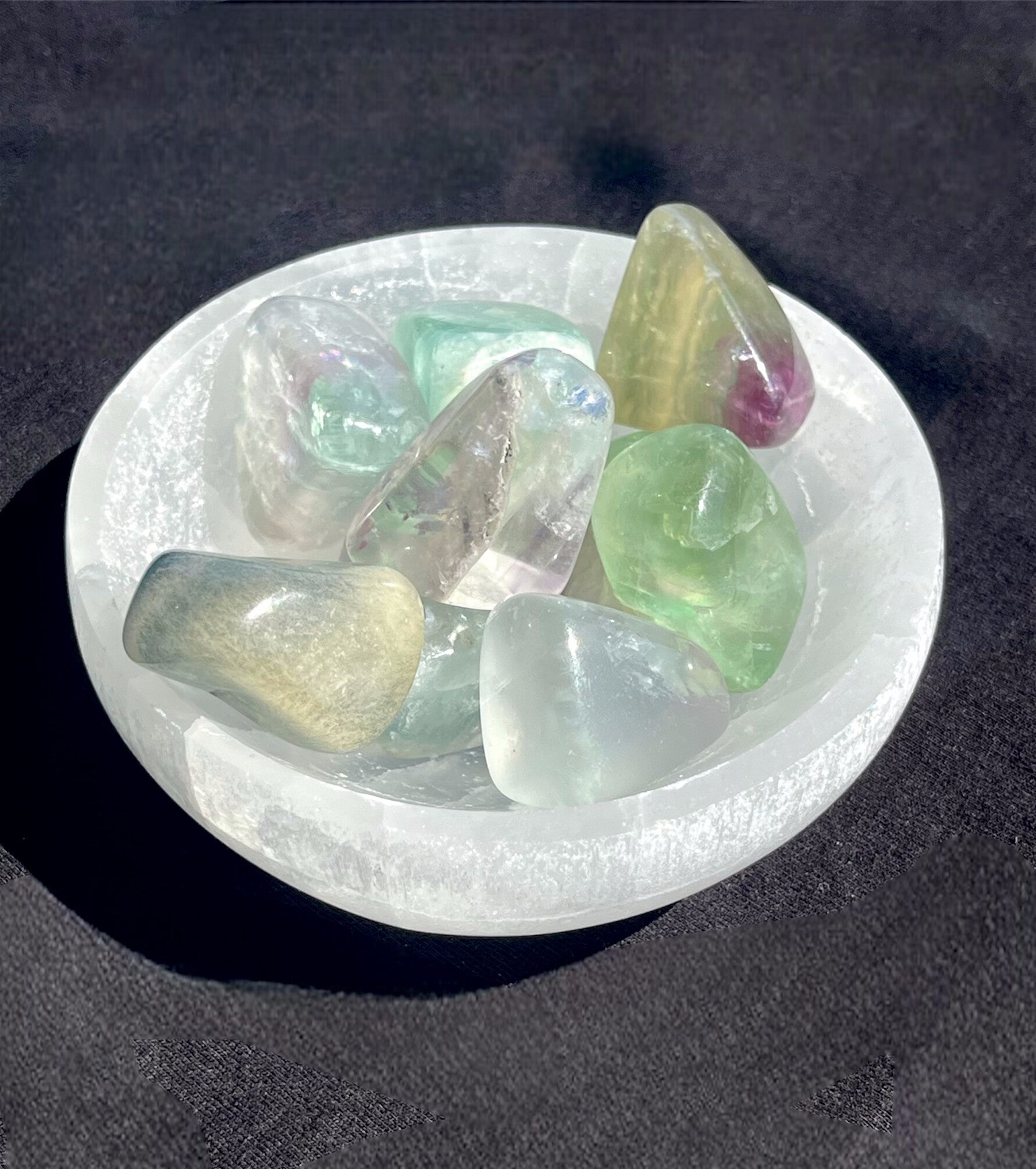 Zum Aufladen und zur energetischen Reinigung deiner Wegbegleiter empfehle ich dir eine Selenit Schale oder eine Selenit-Platte.