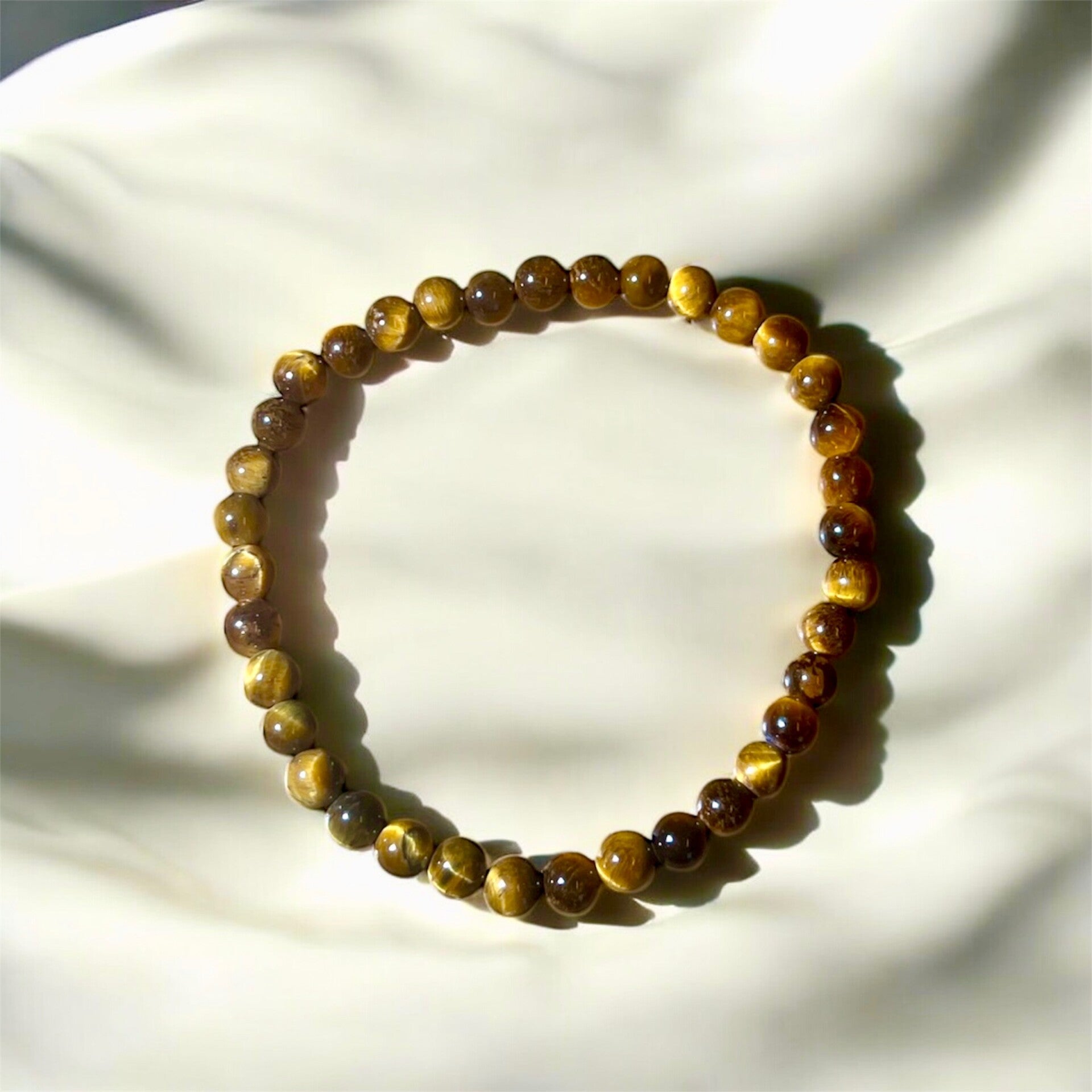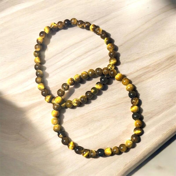 Lieferumfang: 1 Stück Tigerauge Kugelarmband, Länge ca. 15 cm, Kugelgröße ca. 4 mm.