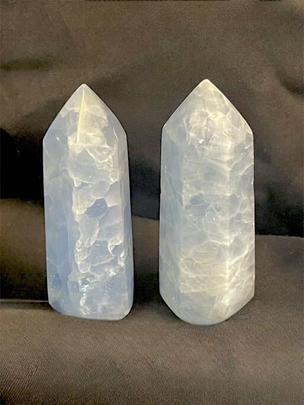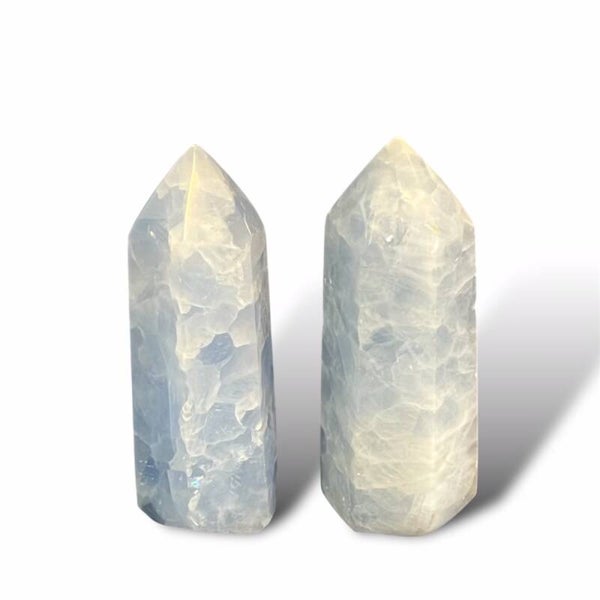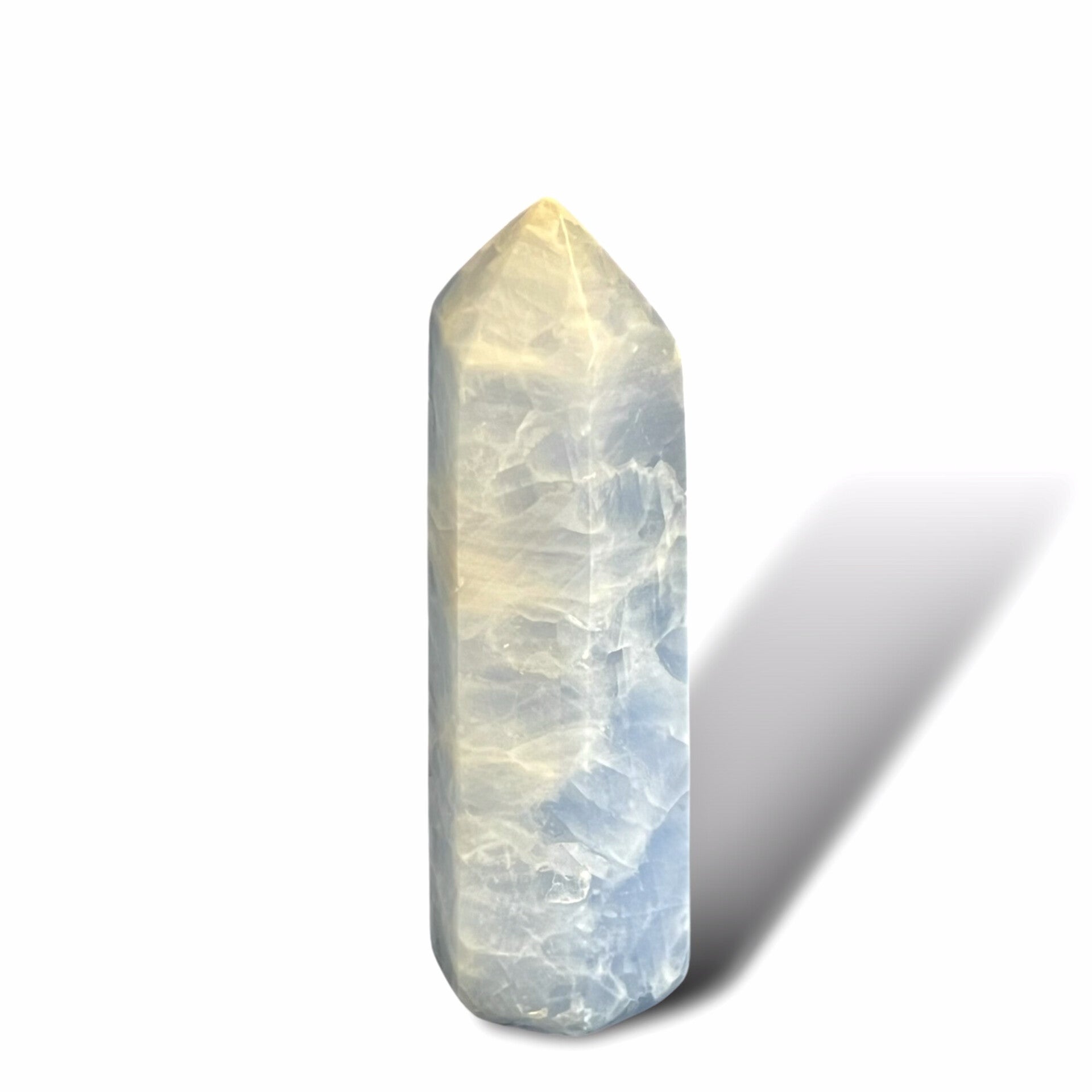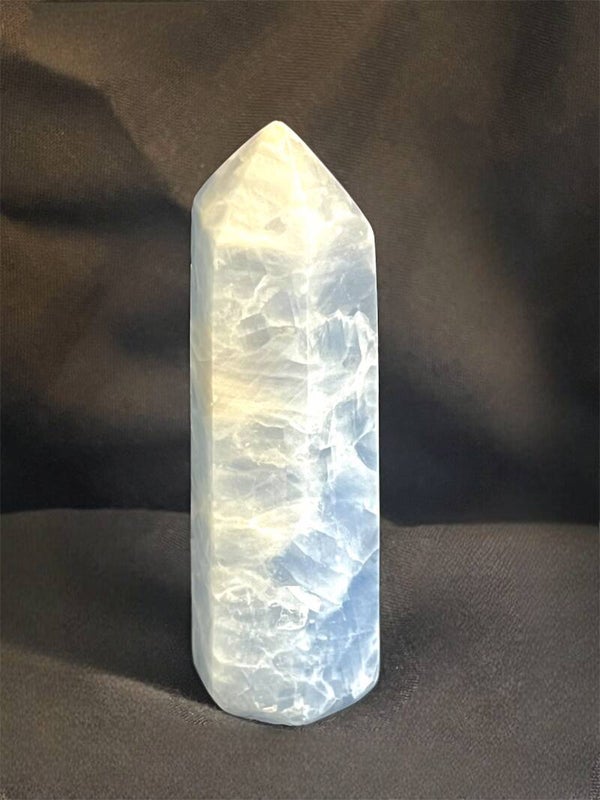 Der blaue Calcit Turm ist wunderschön geschliffen und besticht durch seine einzigartigen Einschlüsse und Farben.