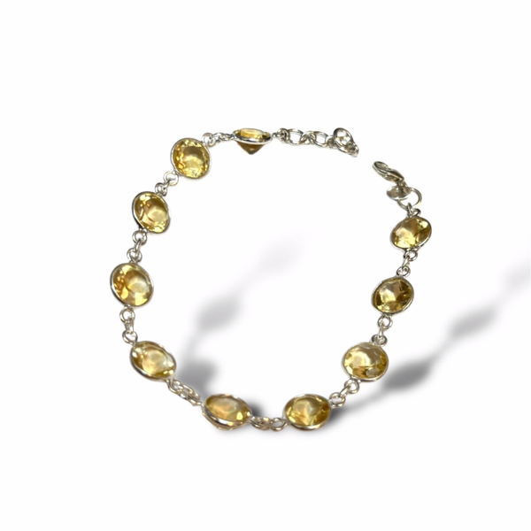 Entdecke dieses traumhafte und exquisit verarbeitete Silberarmband aus 925er Silber, das mit zehn facettierten Citrin-Edelsteinen von höchster Qualität veredelt ist.