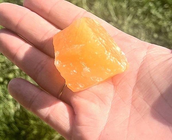 Der Orangencalcit wird als Kristall der Leichtigkeit und neuen, kraftvollen Energie angesehen. In Zeiten der Erschöpfung oder Blockaden hilft er dir, die energetischen Flüsse wiederherzustellen und deine Lebensfreude zurückzuerlangen.