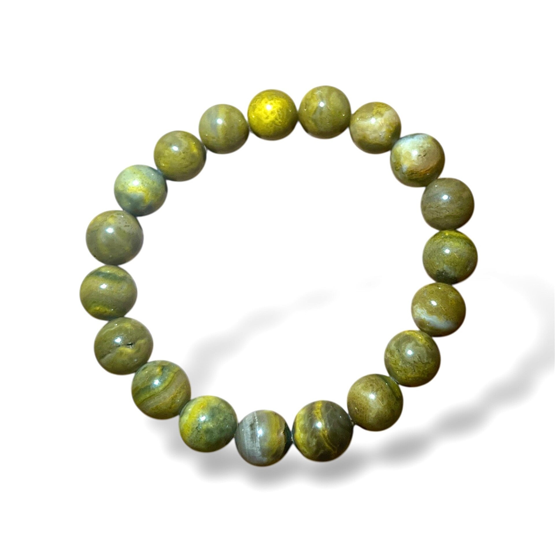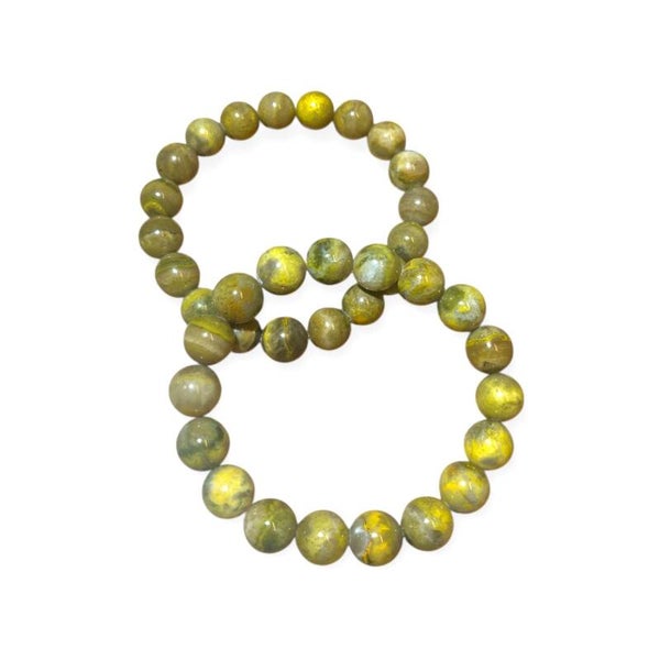 Entdecke die faszinierende Welt des Bumblebee Jaspis mit diesem exquisiten Kugelarmband.