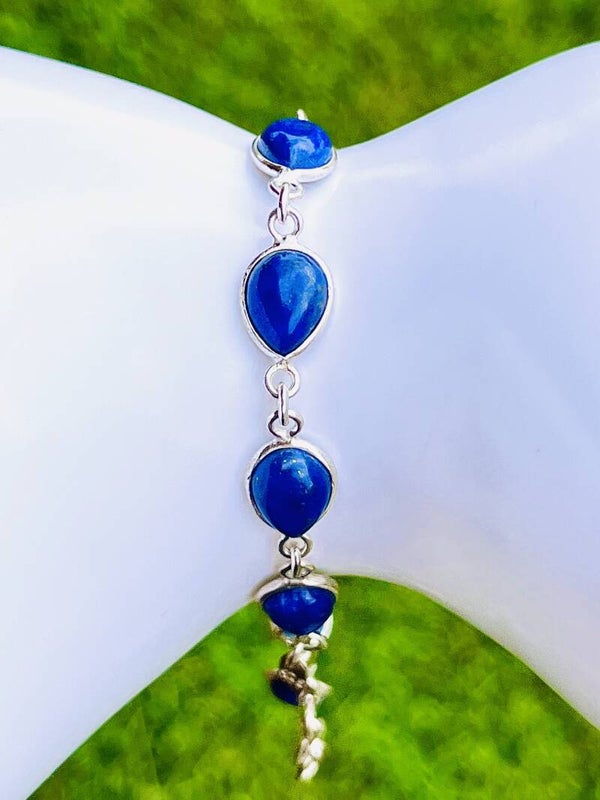 Lieferumfang: 1 Stück 925 Silberarmband mit Lapislazuli Edelsteinen.