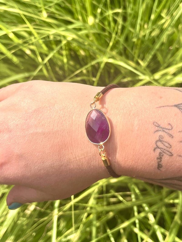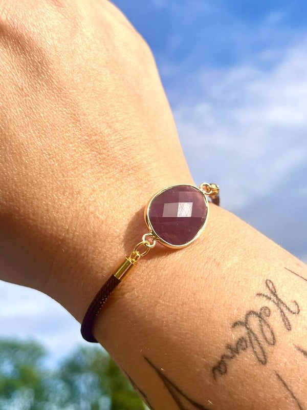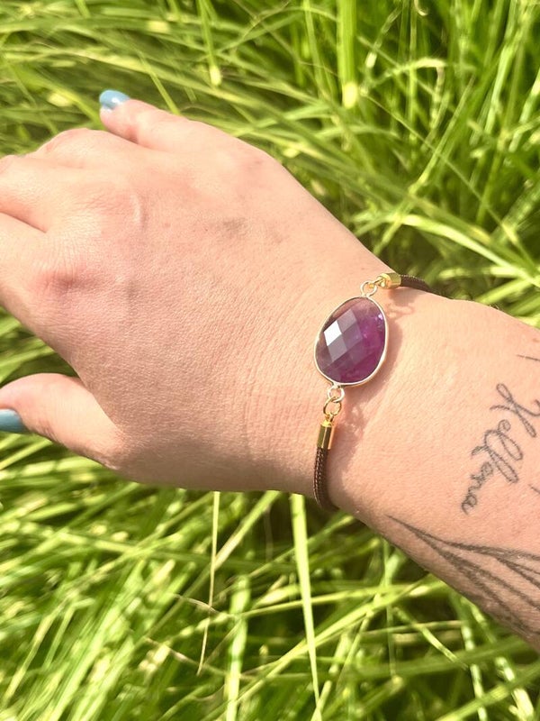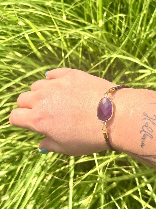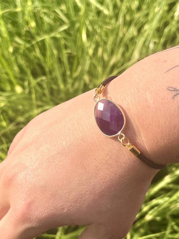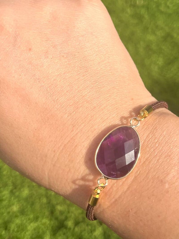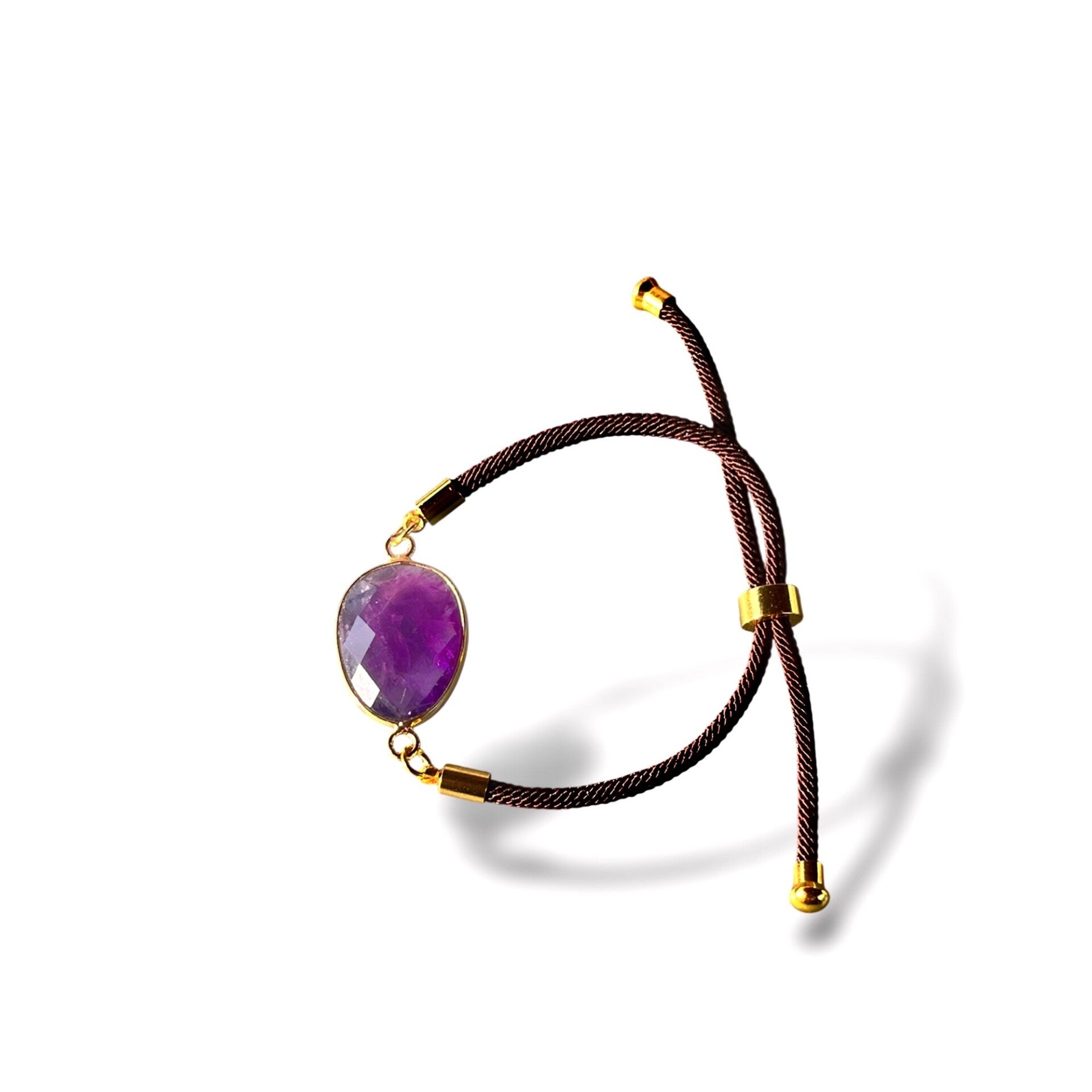 Dieses fein gearbeitete Kordelarmband mit facettiertem Amethyst ist weit mehr als ein Schmuckstück – es ist ein kraftvoller Seelenanker für deinen Alltag.