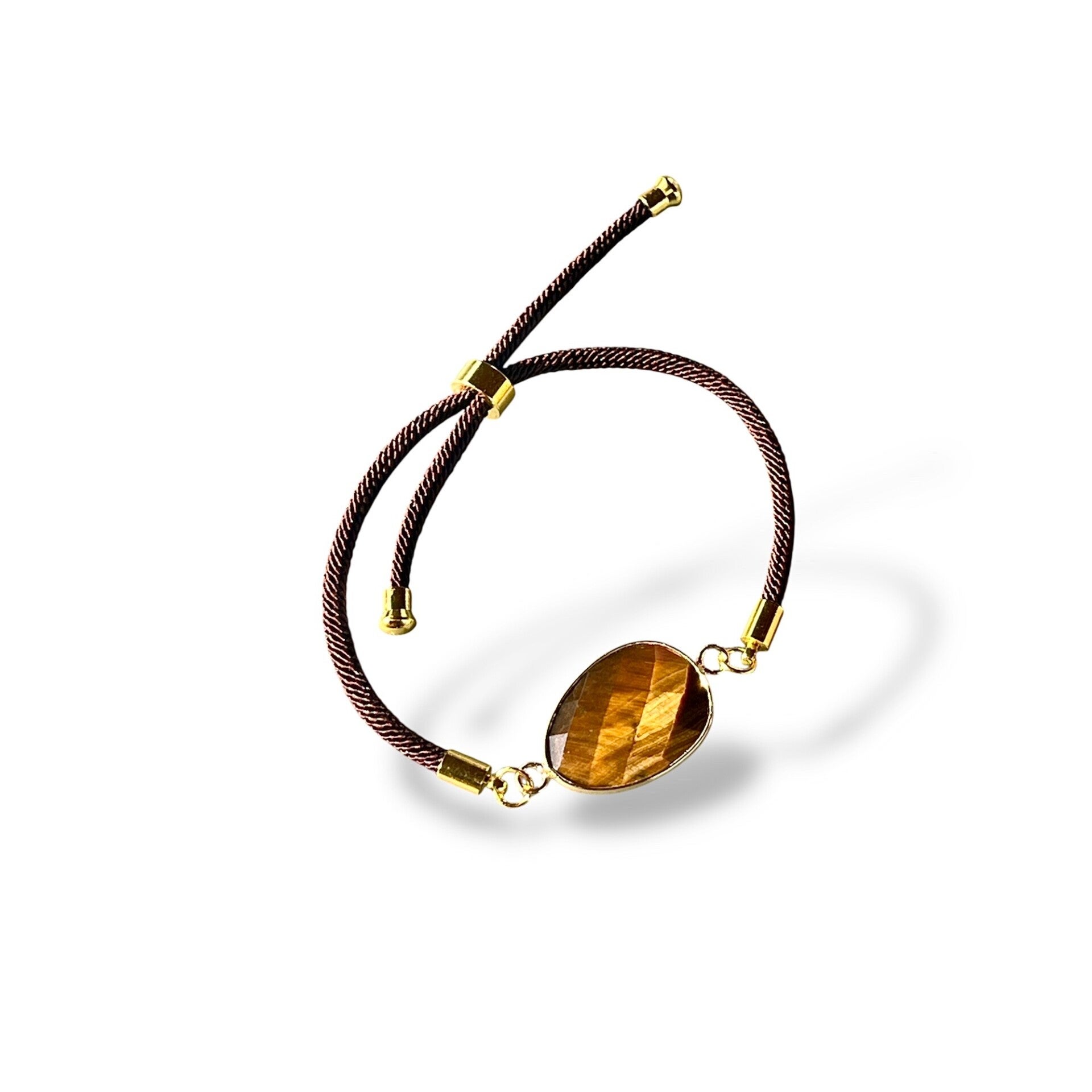Lieferumfang: 1 Stück größenverstellbares Kordelarmband mit facettierten Tigerauge Edelstein (2cm).