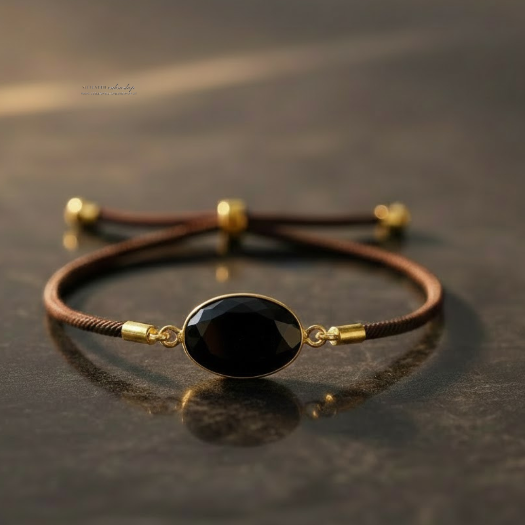 Lieferumfang: 1 Stück größenverstellbares Kordelarmband mit facettierten schwarzen Obsidian Edelstein (2cm).