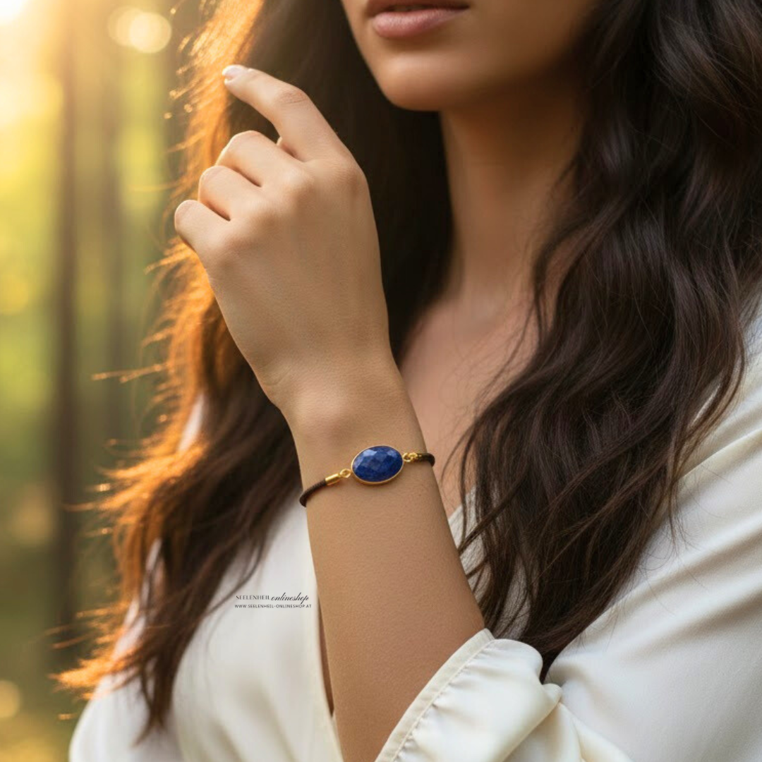 Der tiefblaue Heilstein ist eingefasst in eine hochwertige Metallfassung und sorgt für harmonische Energie – perfekt für Alltag & Meditation.