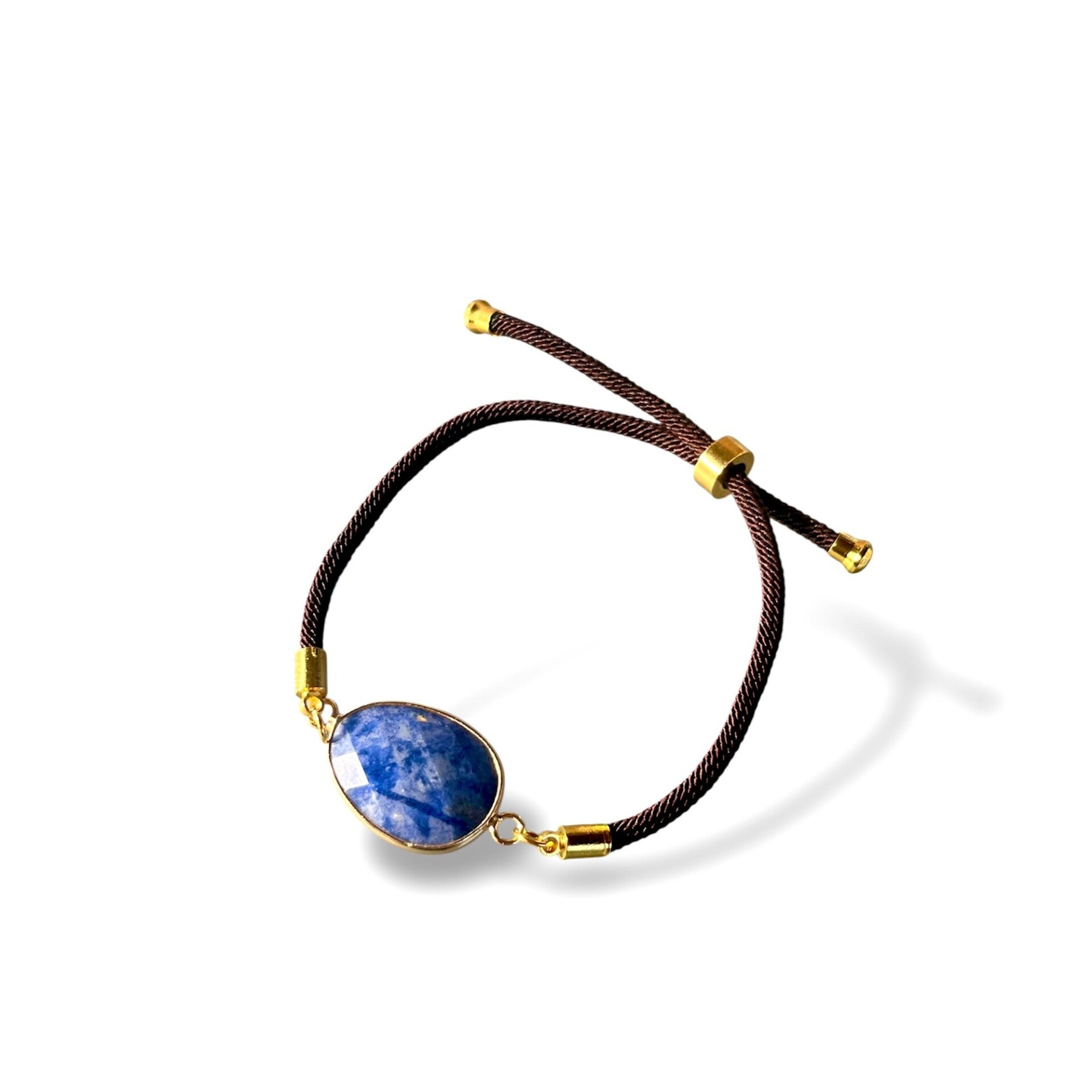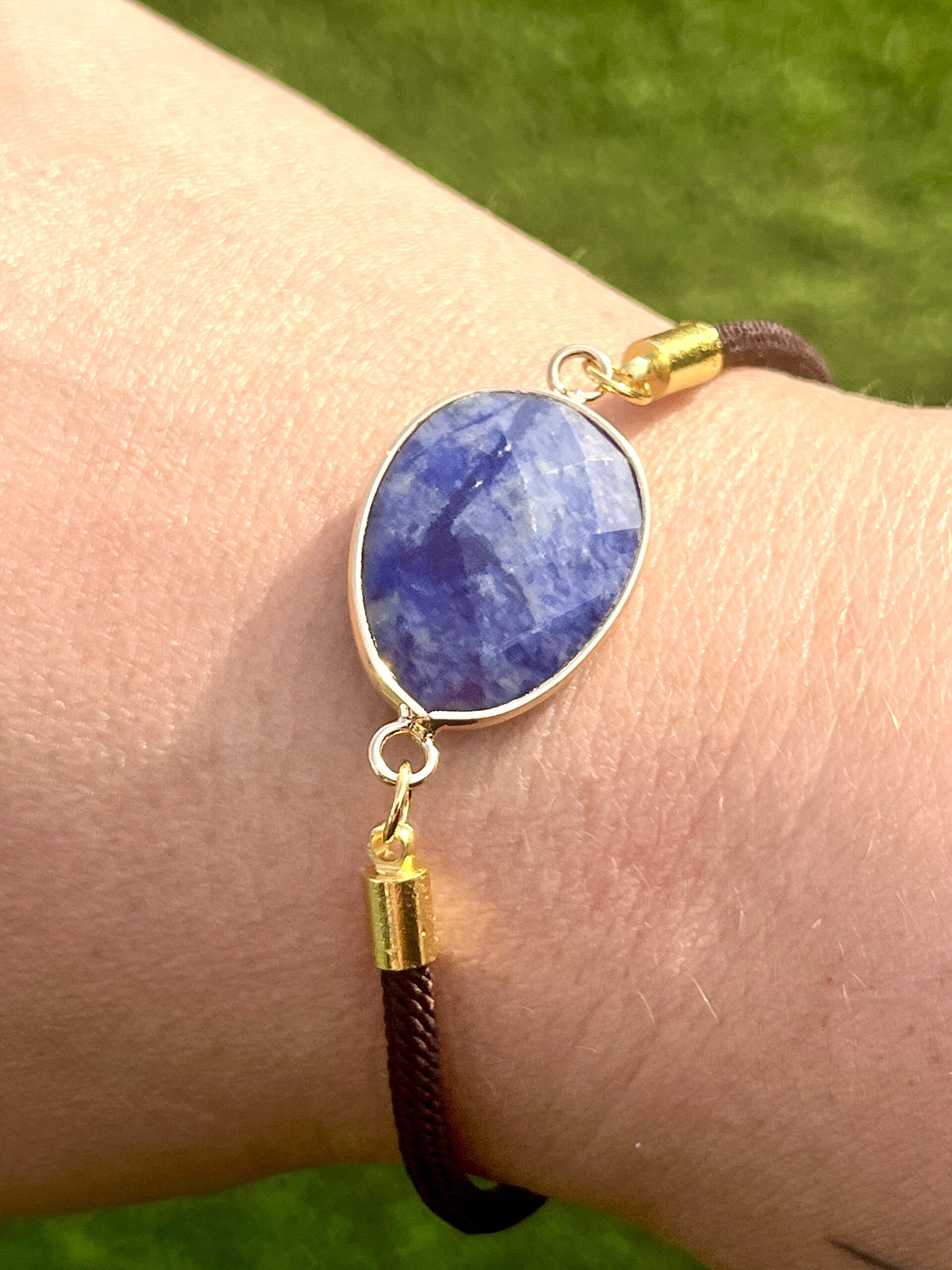 Dieses stilvolle, größenverstellbare Kordelarmband mit facettiertem Sodalith-Edelstein (ca. 2 cm) vereint Wirkung und schlichte Eleganz.