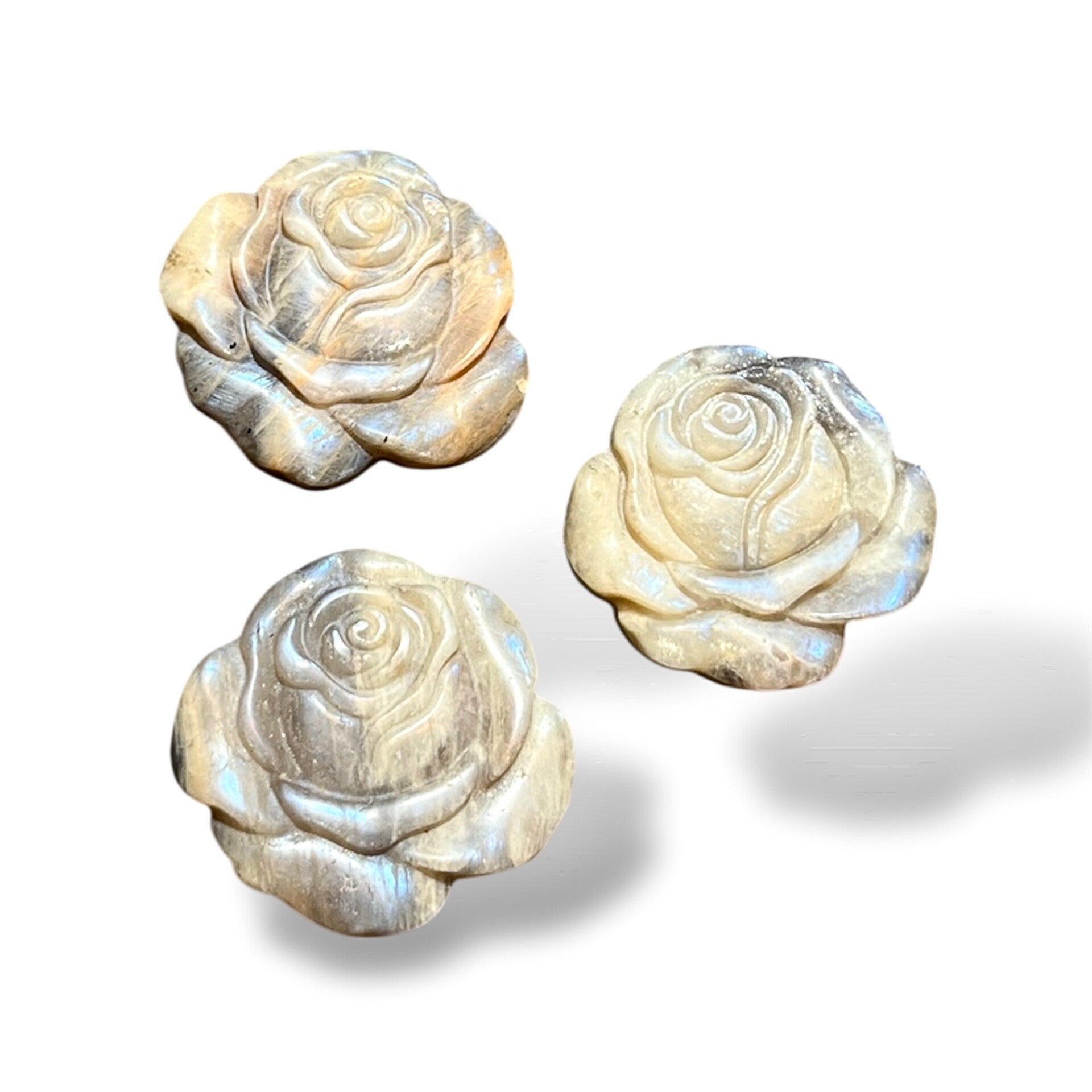 Edelstein Rose aus Mondstein – Handgeschnitzt & Einzigartig