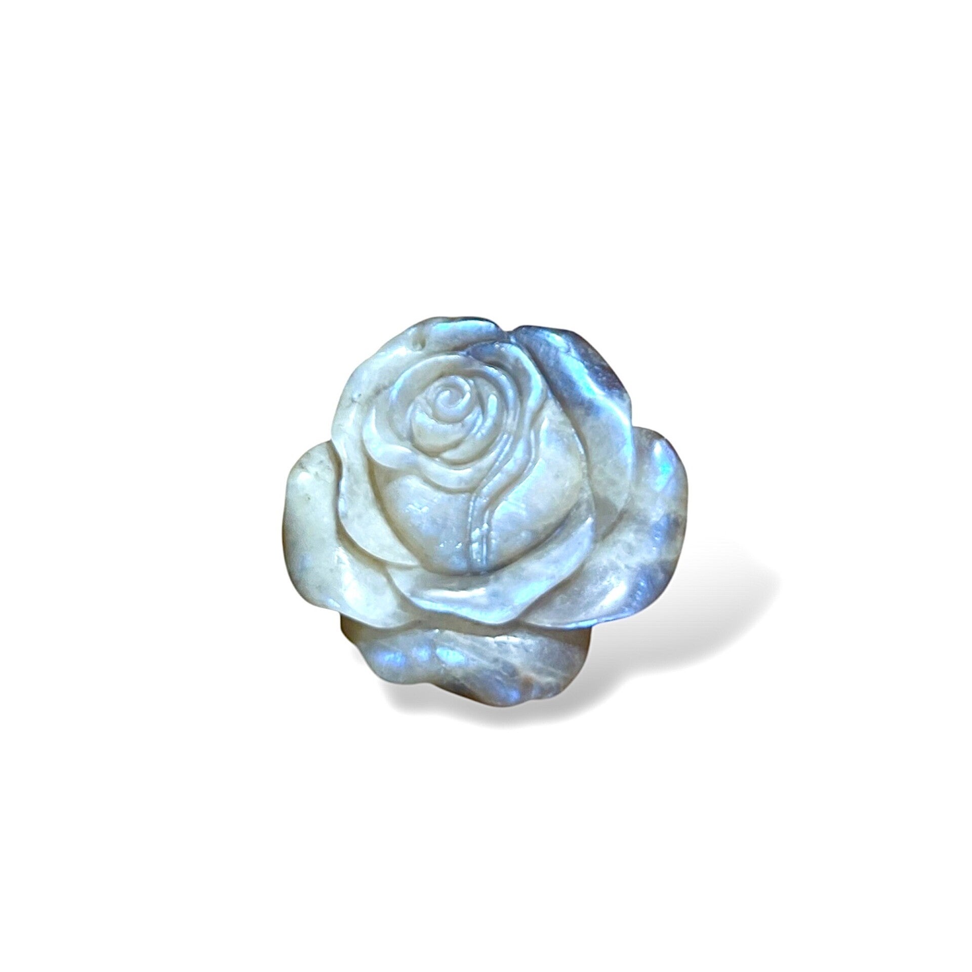 Mondstein Edelstein geschnitzt – Handgeschnitzte Rose mit Flash | Unikat