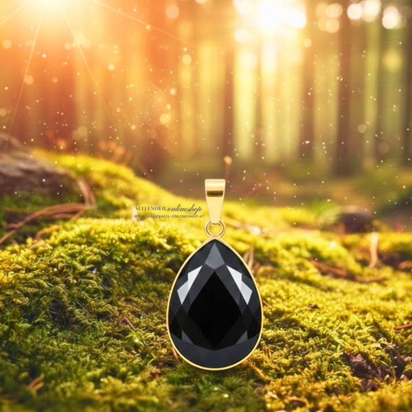 Schwarzer Obsidian Anhänger – Facettiert, Vergoldet & Spirituell Wirksam