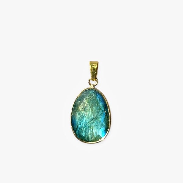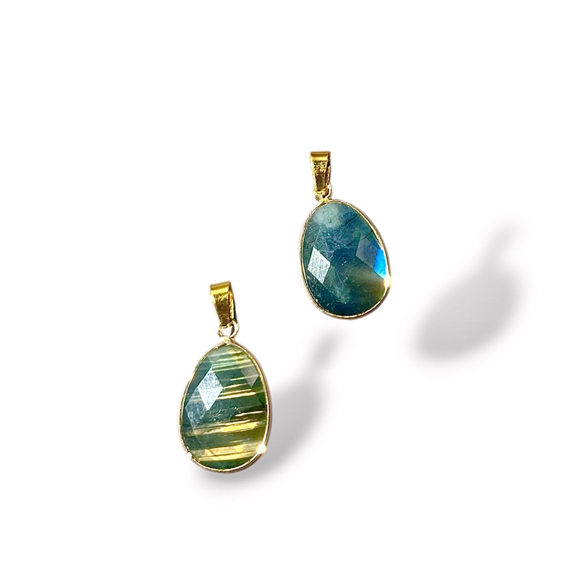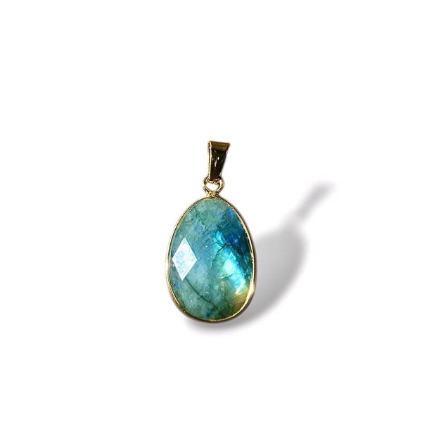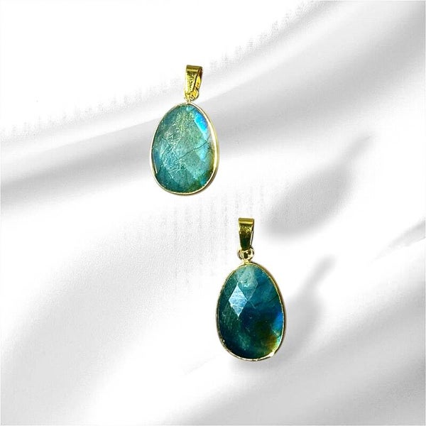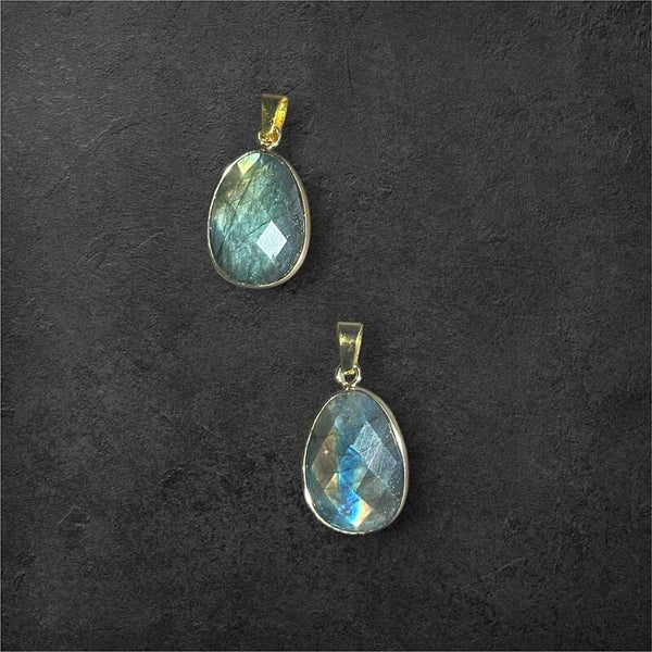 Labradorit Anhänger Facettiert – Super-Flash Edelstein Schmuck, Vergoldet & Spirituell