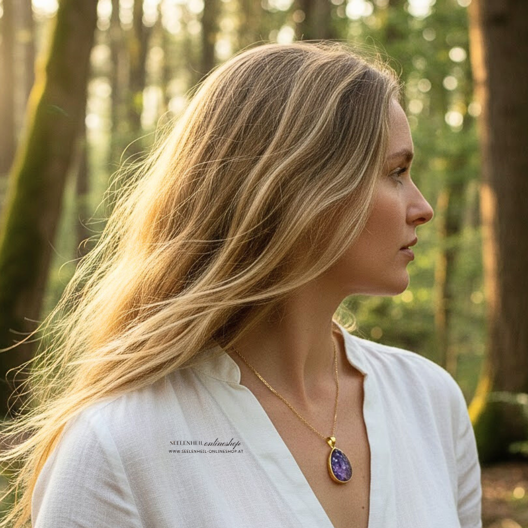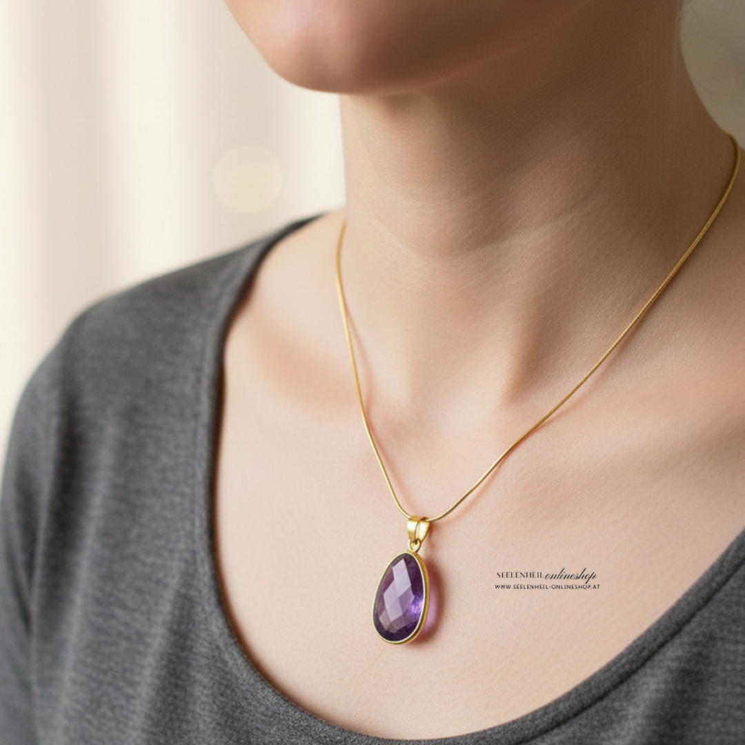 Amethyst Anhänger – Facettiert, Vergoldet & Spirituell Wirksam