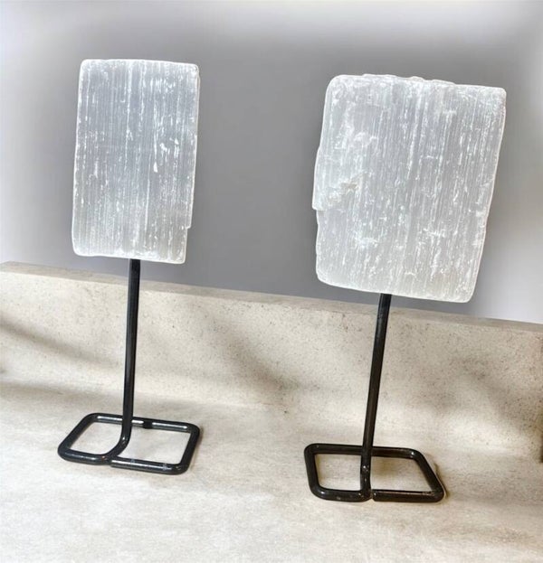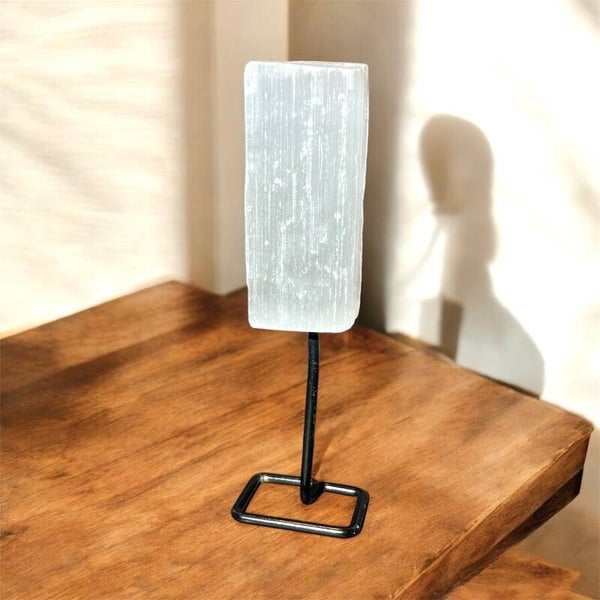 Selenit auf Metallhalterung – Lichtvoller Kristall für Klarheit, Reinheit und Harmonie