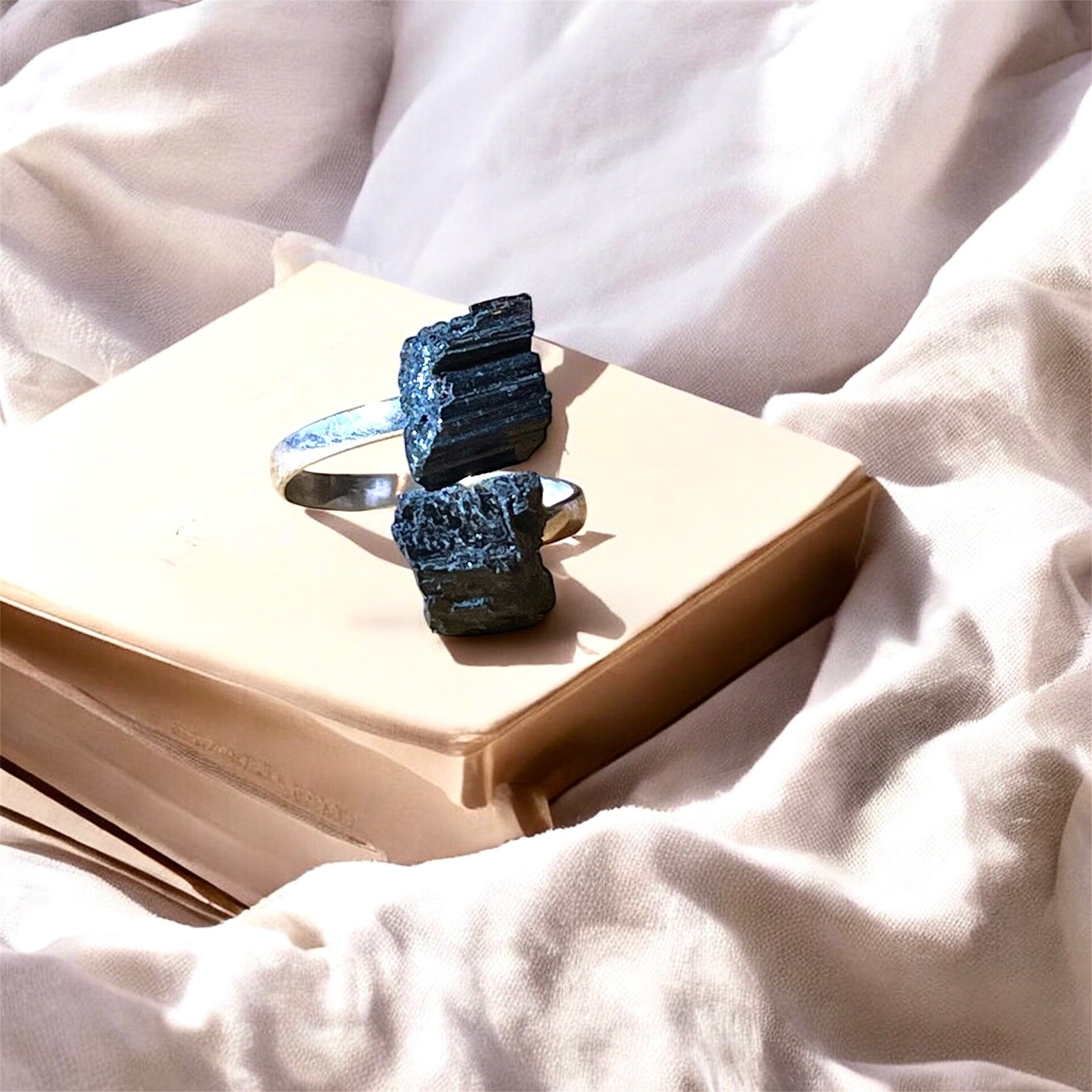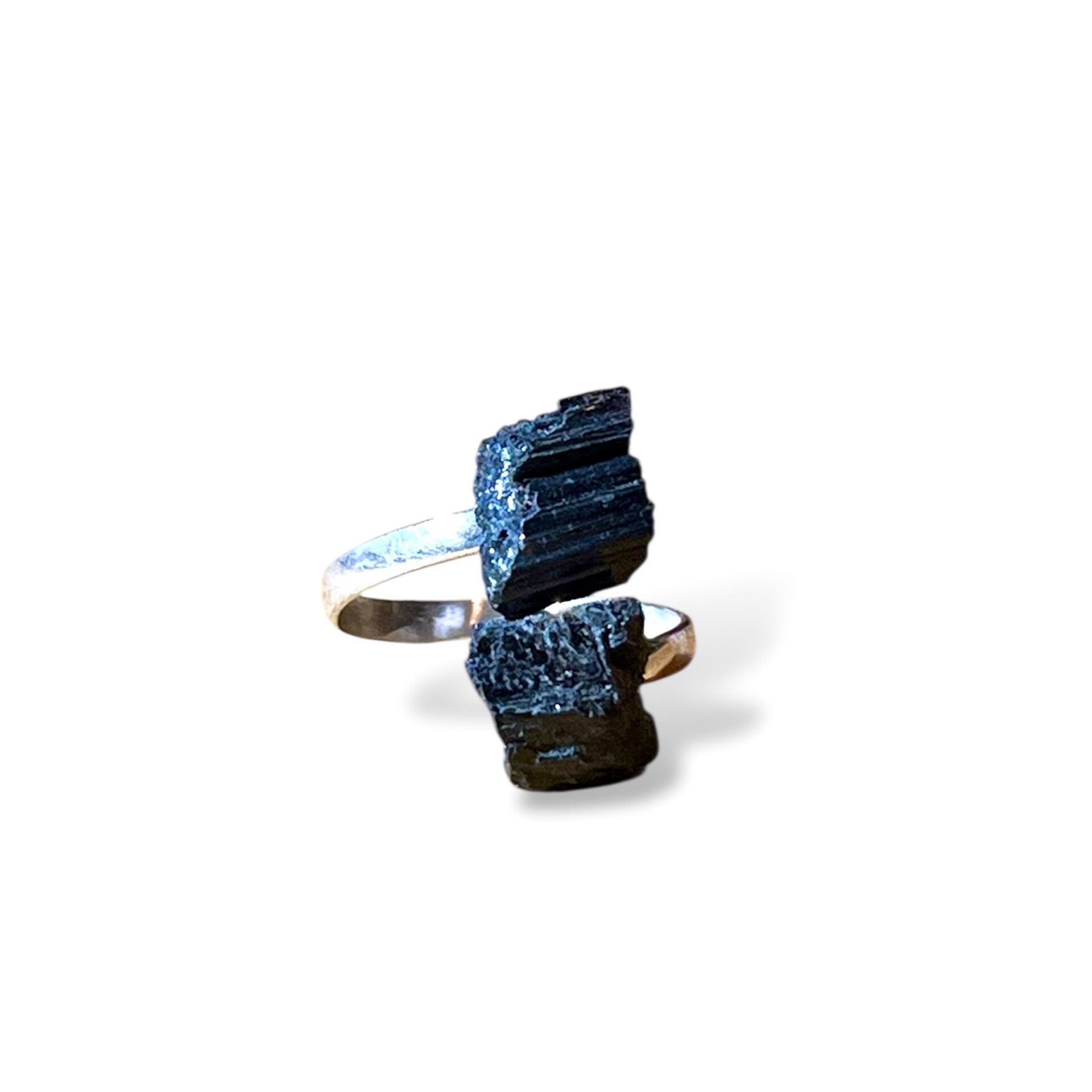 Der Ring ist mit zwei natürlichen Turmalin Rohsteinen besetzt – ein Schmuckstück, das nicht nur stilvoll ist, sondern auch energetisch wirkt.